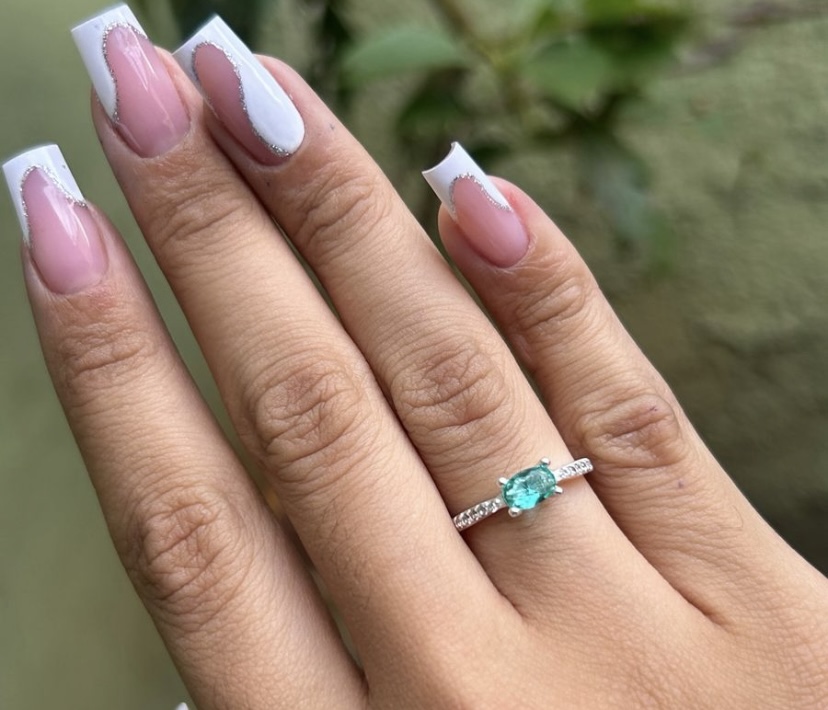 Anel Solitário Cravejado Pedra Verde em Prata 925