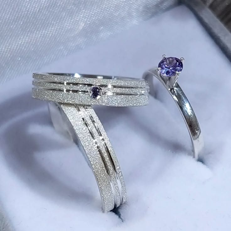 Par Aliança Lilás Fosco 5mm com Solitário