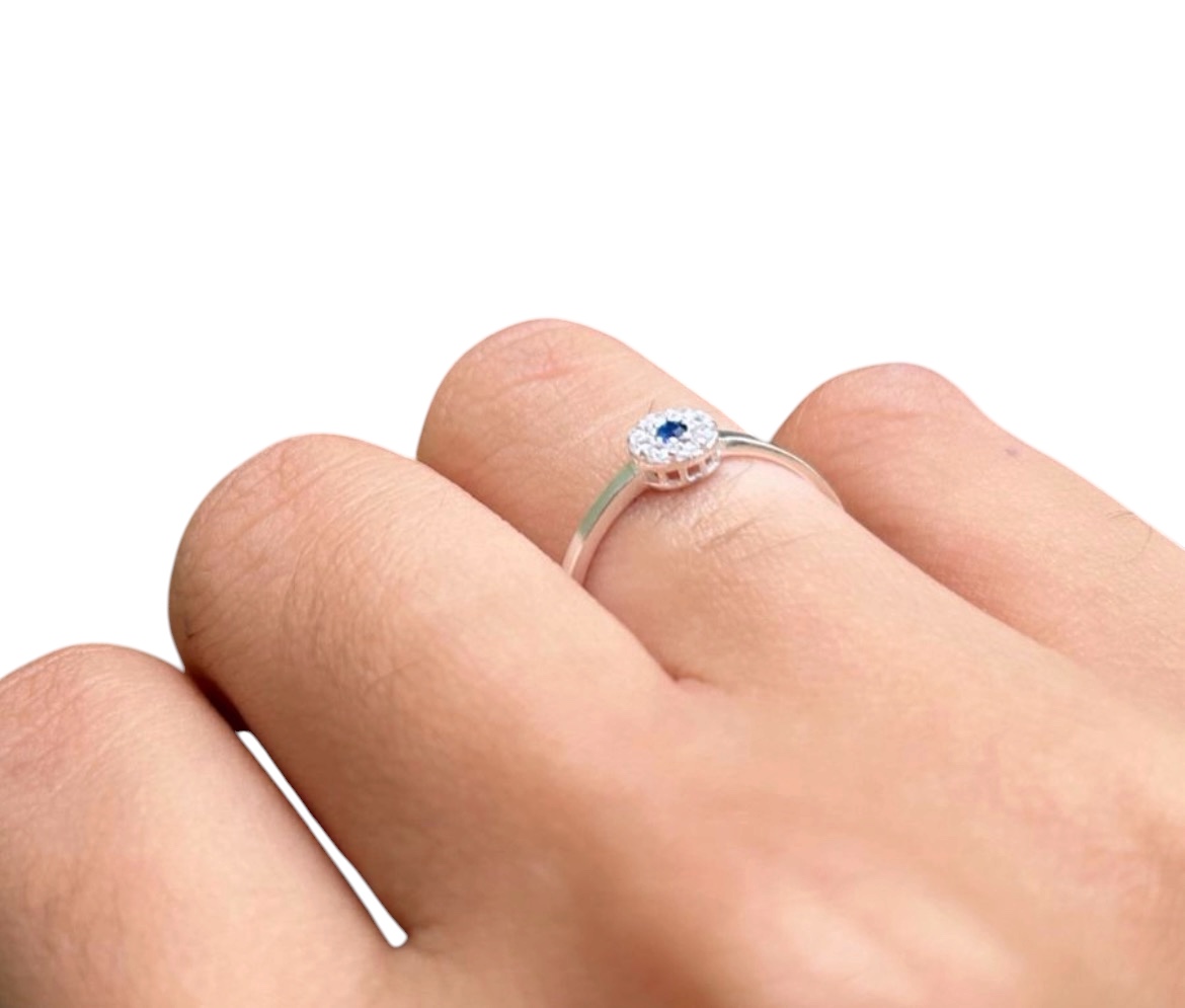 Anel Solitário Cravejado redondo em Prata 925