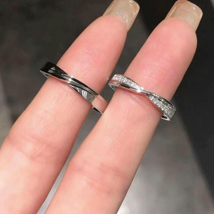 Par Aliança Brilho Cravejado com meia volta 3mm